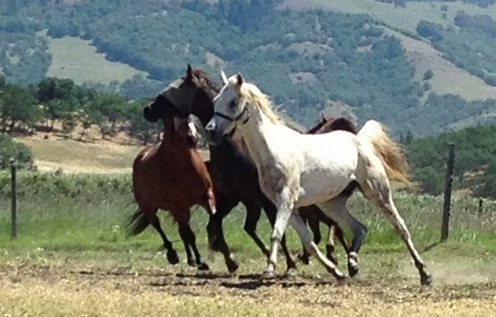 A lot of visitors to the barn ask about the horse play and whether horses ever get hurt out with their herds.   I realize it looks like we get a little wild when we are all turned out, and most people only want to be near us when we are in a stall, or in a halter.  What these people don’t understand is that being with a herd, running mostly free, actually calms us down!    We need the company and touch of other horses, we feel more confident in a group and we feel safer with horse leaders than with humans.    We are horses!