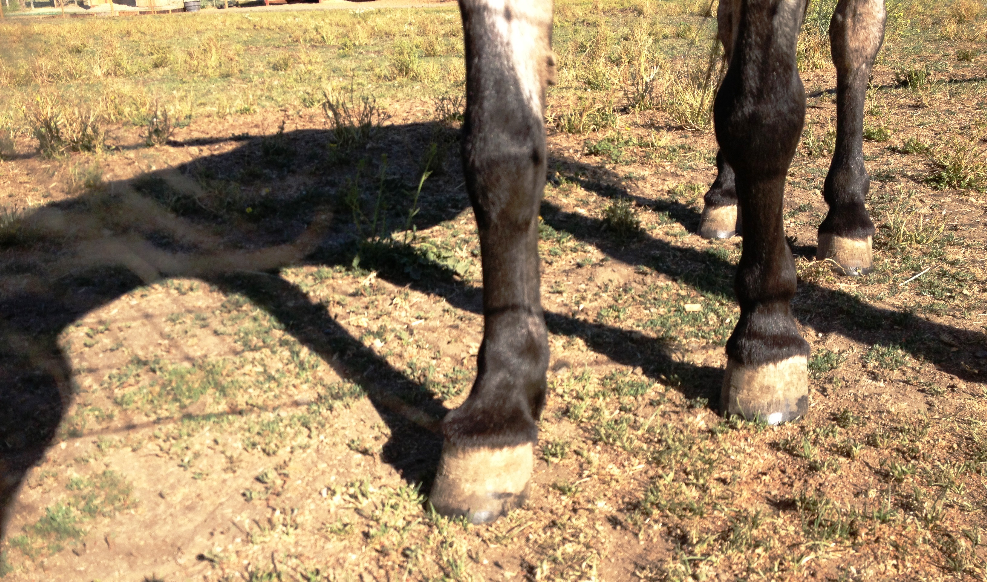 The end of June marked the 6 month anniversary of our “foot fetish project.” All of our laminitic horses in the project were X-rayed again to see what progress had been made or not since December of last year. We got good and bad news. The good news is that Thor and Bojingles both showed excellent progress, in large measure because of their trims, and for Thor his shoes. Bo will continue to receive anti-inflammatory medicine. The other horses in the project that have navicular disease – Shorty and Bryant – continue to thrive with their shoes. They are on a regular trimming/shoeing schedule now, and this seems to have made a significant difference in both of their qualities of life. Our two latest additions to the project – Jasmine and Mowen, are also doing well. Mowen, who has thin soles like Thor, responded immediately and happily to his new shoes. Jasmine, who has laminitis, responded wonderfully to her new trims and appropriate diet and is sound!