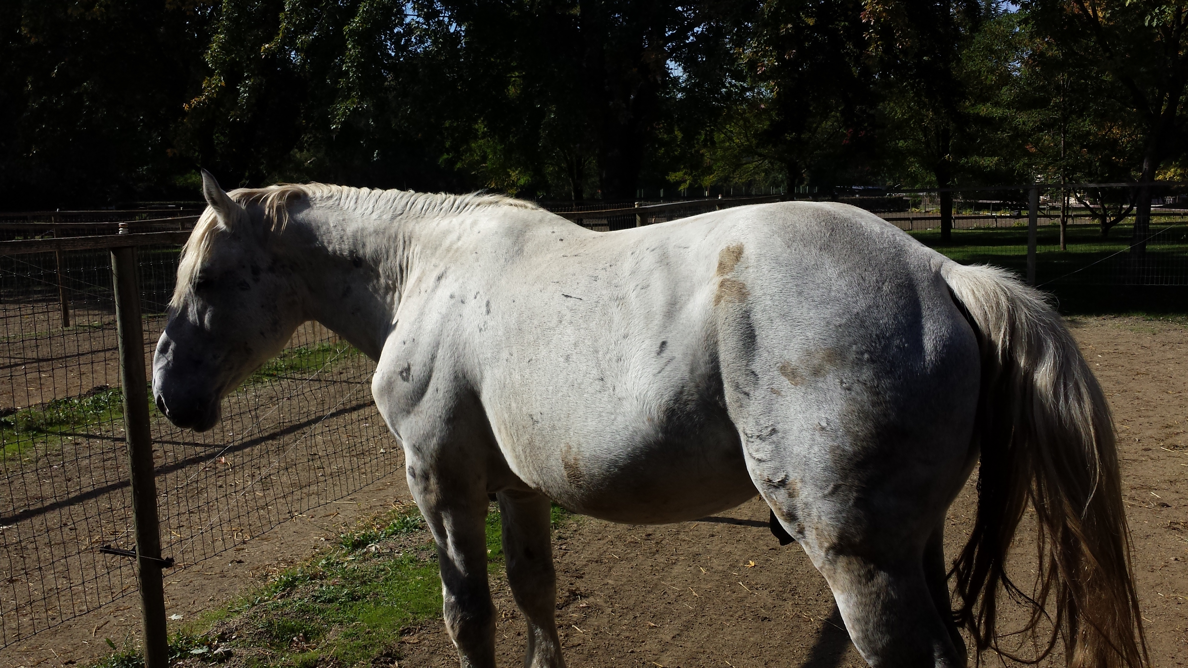 His story before being surrendered to the Equamore Sanctuary is a fairy tale gone wrong. Named after characters in “The Lord of the Rings,” a herd of horses were the innocent victims of an owner who dreamed of a tranquil herd of Percheron stallions and mares living freely on a large property in northern California. Unfortunately, as Flint’s scarred body bears witness, allowing stallions to breed indiscriminately with mares who inhabit the same field is folly.