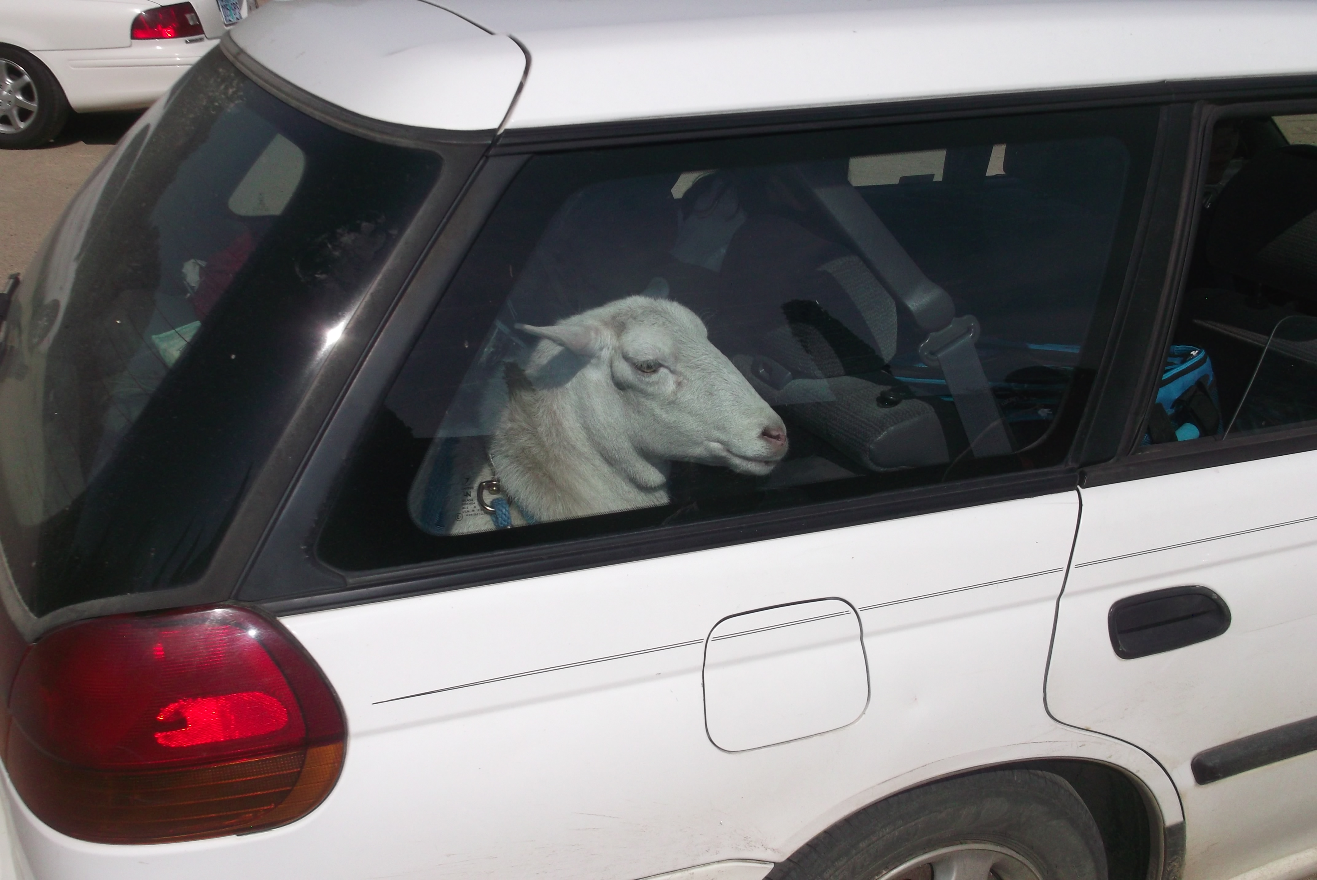 Some days are just hard to explain. During our wonderful horse show Saturday, a Frenchman traveling with his family through the Rogue Valley stopped by quite upset about a sheep he had seen in the area. He and his family had seen it days before, alone and seemingly abandoned. Saturday as they were returning to California, he saw it again, but it was down and still alone. The sheep drank the water he gave it apparently quite thirsty, with no water source in site. He had noticed our sign and drove to Equamore in the hopes we would know what to do. So, of course a carload of Equamore volunteers left the horse show and followed the man to the sheep. The sheep’s feet were massively overgrown; it was alone and down; and there was no apparent owner in the area. The volunteers determined that the sheep was abandoned and in serious need of care. The kind Frenchman lifted the sheep into the volunteer’s car and continued his journey, and the sheep rode to Equamore, apparently enjoying the ride.