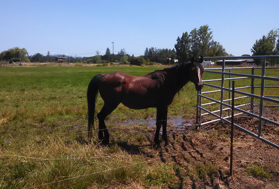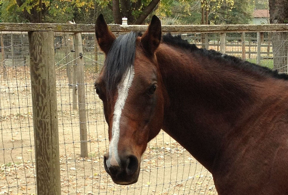 This beautiful Bay Arabian came to us as a completely untrained and dangerous twelve-year-old stallion. His former owners are nice people, but simply didn’t know what they were doing. They acquired a mare twelve years ago who was pregnant with Leo. He was born on their property and Leo’s mother has since passed away. Leo was never trained and attempts to geld him failed because the veterinarians could not contain him long enough to anesthetize him for the surgery. His lack of basic training as well as being a stallion had made him completely unmanageable. Leo was kept in a field separated from two other horses on the property and although they could visit over the fence line, Leo spent years without any real physical contact with other horses and developed no horse social skills.