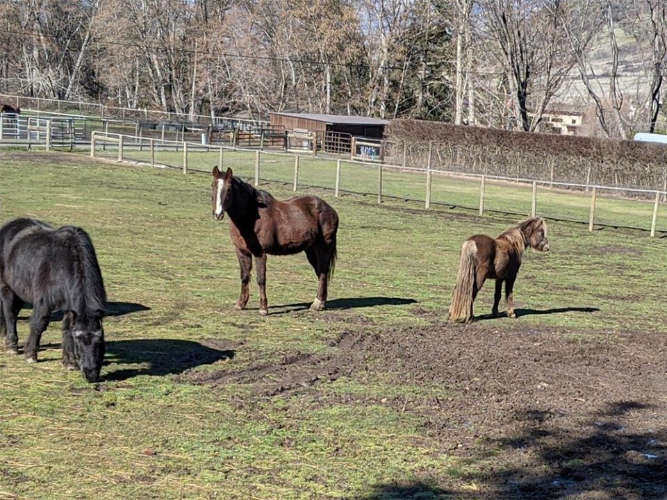 Phoenix shared the fields and shelters with The General who is blind, the minis (Jasmine and Ranger), and the ponies (Sampson and Poquito.)