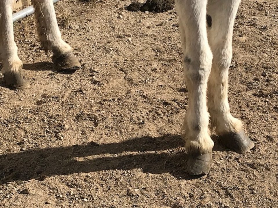 The man who owned them had them turned loose in a big pasture for about two years. He never had the donkey’s feet trimmed and when the pasture was low on feed he did not supplement with any hay. They were just left to starve.