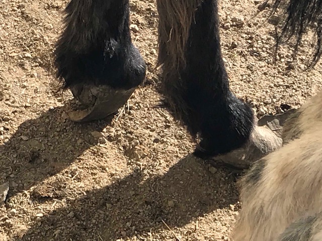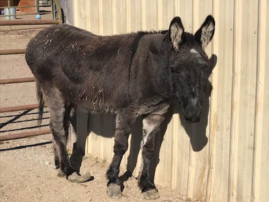The man who owned them had them turned loose in a big pasture for about two years. He never had the donkey’s feet trimmed and when the pasture was low on feed he did not supplement with any hay. They were just left to starve.