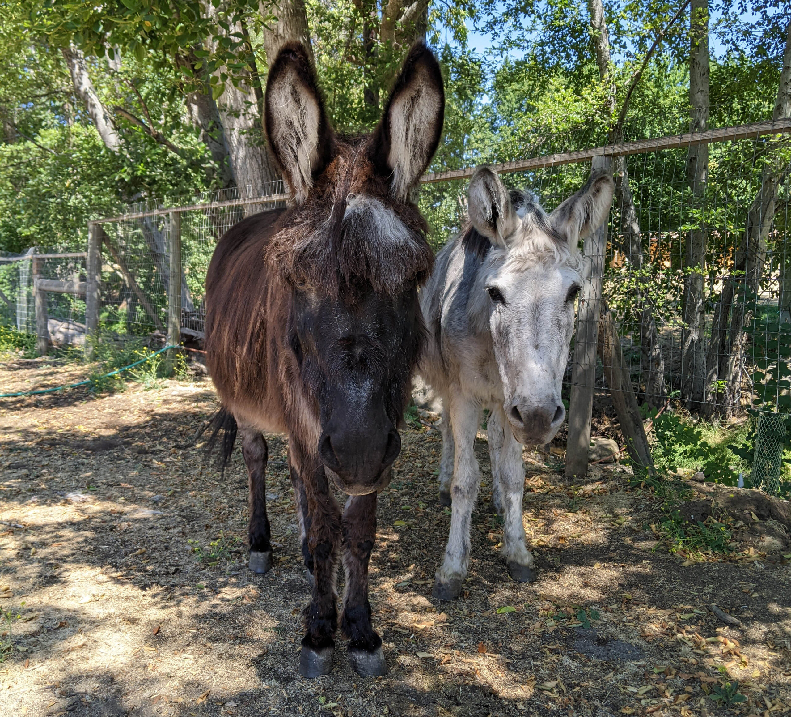 Cotton passed away in June of 2024. Joey and Holly lived together in the field and shelters with the blind horse – Wishes, a partially blind horse named Ella, and a sighted horse named Lady Bird. The donkey’s boisterous braying could be heard throughout the neighborhood quite frequently during the day and even sometimes during the night. The sounds they made never cease to put a smile on the faces of those within ear shot.