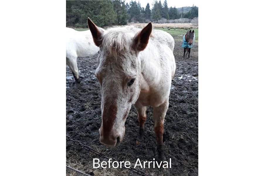 For years, Dewey was a pack horse used on hunting excursions and boarded at a facility in between trips. When the facility’s manager witnessed Dewey’s owner physically abusing him and threatening him with slaughter, the manager became Dewey’s first rescuer and took over his care. Unfortunately, Dewey’s rescuer died of cancer.
