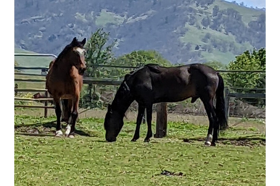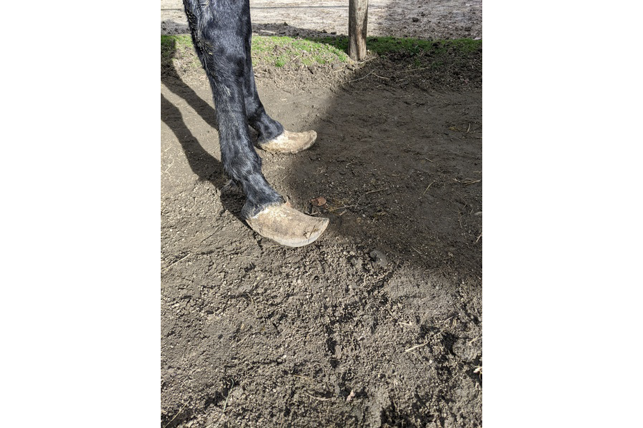 All that has changed. He has a best friend in Frida and spends his nights in a stall next to her and turned out in a large field during the day for exercise with Frida, Chaps, and Star. He is much easier to handle and his front feet can be trimmed without incident. Approaching his hind feet is another story and a work in progress.