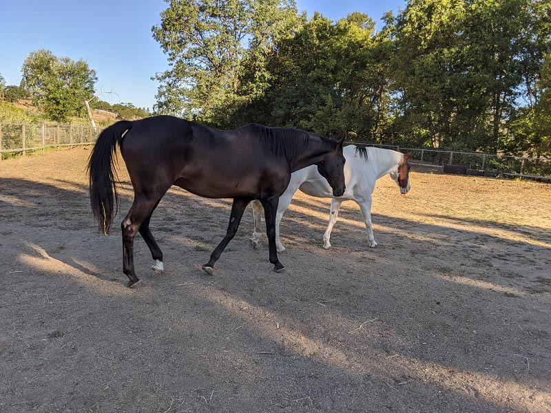 These horses are tightly bonded to each other, and they both have a sweet and friendly disposition. Currently they have side by side stalls in the couple’s barn and are turned out into the couple’s field for exercise and grazing during the day.